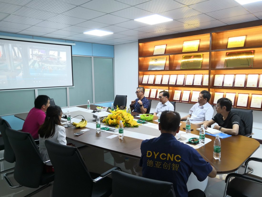 在公司会议室,总经理雷德意先生向领导详细地介绍了公司未来发展规划、研发进度,并播放了新产品视频。王总对设备的高度自动化程度与机械手的应用给予了高度肯定,同时希望公司做好知识产权三级保护。匡红杰教授对德亚的设备给予了珍贵的评价“不错”!薛万银院长参观完德亚广州研发中心,对德亚研发工程师的创新精神大加赞赏,“行业的产业升级有你们的付出一定有希望”!田寅主任给德亚团队介绍了预制行业的现代国际领先技术,对德亚的未来发展也充满期待。