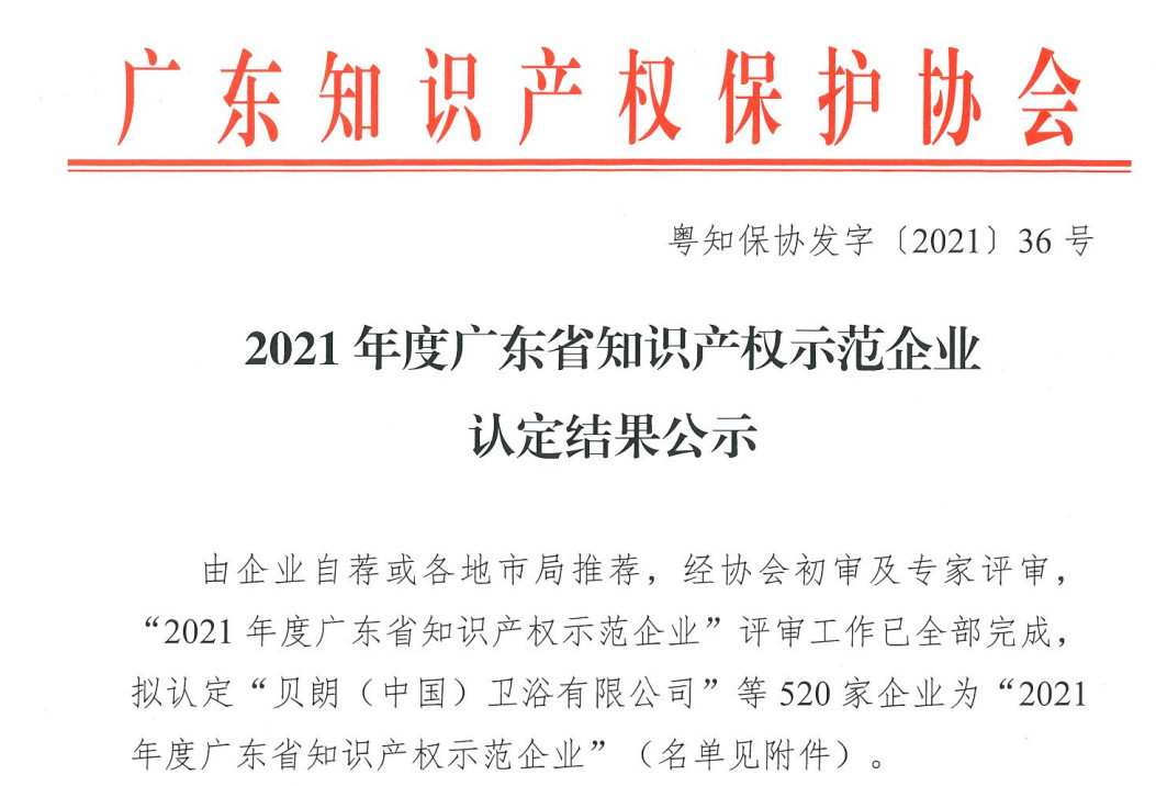 2021年12月10日获悉,粤知保协发字 [2021] 36号文-2021年度广东省知识产权示范企业认定名单公示,乐动·官方版网站登录入口位列候选名单。