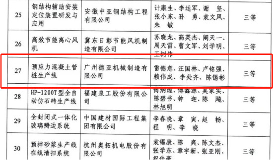 热烈祝贺德亚创智“预应力混凝土管桩生产线”荣获2022年度“利君杯”第十六届中国建材机械工业协会技术革新奖