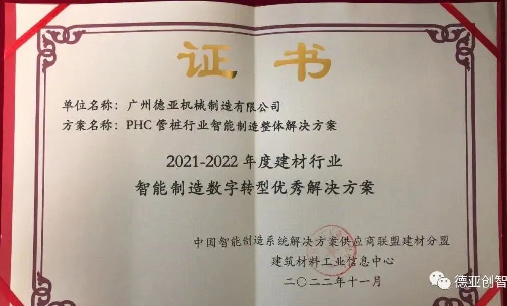 重磅|德亚创智获2021-2022年建材行业智能制造数字转型优秀解决方案