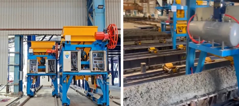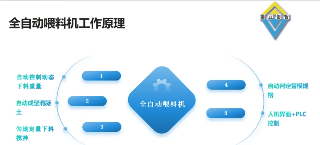 自动实现管模判定-自动行走喂料-自动控制管模下料重量-自动成型混凝土功能等作业,从而节约操作人员,提高生产效率等,确保管桩加工质量。